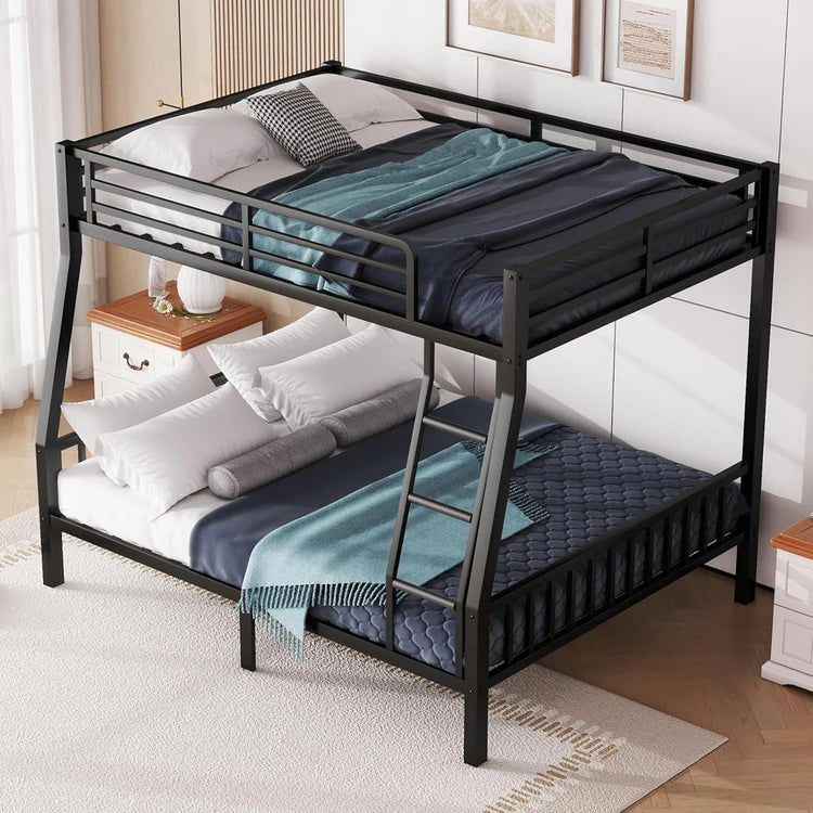 The Full XL Over Queen Metal Bunk Bed is ideal for saving space. With 11.5 inches of clearance under the bed. Underbed storage helps you utilize space more efficiently and keep your entire room tidy. It also provides ample sleeping area. This metal bunk bed is ideal for families, dormitories, and shared rooms, combining practicality and style.